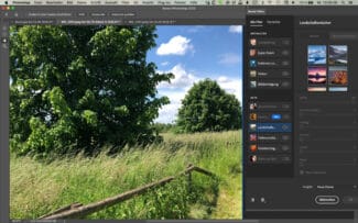 PHOTOSHOP: Neural Filters bieten in der neuen Version, unterstützt von Adobe Sensei, „Landschaftsmischer“, „Farbübertragung“ und „Harmonisierung“. Das Resultat sieht auf den ersten Blick schlüssig aus, doch sollte man nicht zu sehr in die Details hineinzoomen.