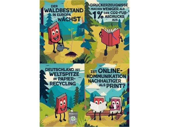 Er hat eine Comic-Figur geschaffen, die die Botschaft „Print ist nachhaltig“ liebevoll und selbsterklärend transportiert.