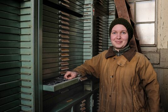 Die nächste Generation steht bereit – wie Heike Schnotale als Schriftsetzerin und Monotypetasterin. (Bild: Ria Mücke)