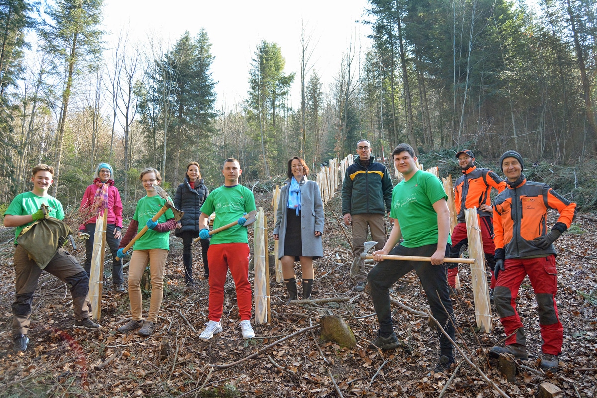 In Zusammenarbeit mit dem Landschaftserhaltungsverband Ortenau e. V., dem Forstrevierleiter für den Gemeindewald Biberach Christoph Müller und dem Forstservice Schnaitter forsten die Karl Knauer KG Anfang März eine rund 1.000 qm große Brachfläche in Biberach/Baden wieder auf. Bei dieser Aktion wurden mit der Unterstützung von vier Karl Knauer-Auszubildenden insgesamt 250 Traubeneichen und 50 Winterlinden gepflanzt, um eine ehemalige Brandfläche zu rekultivieren.