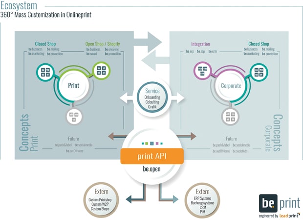 Das be.print-Ökosystem: 360°-Mass Customization im Onlinedruck. (Bild: be.print)
