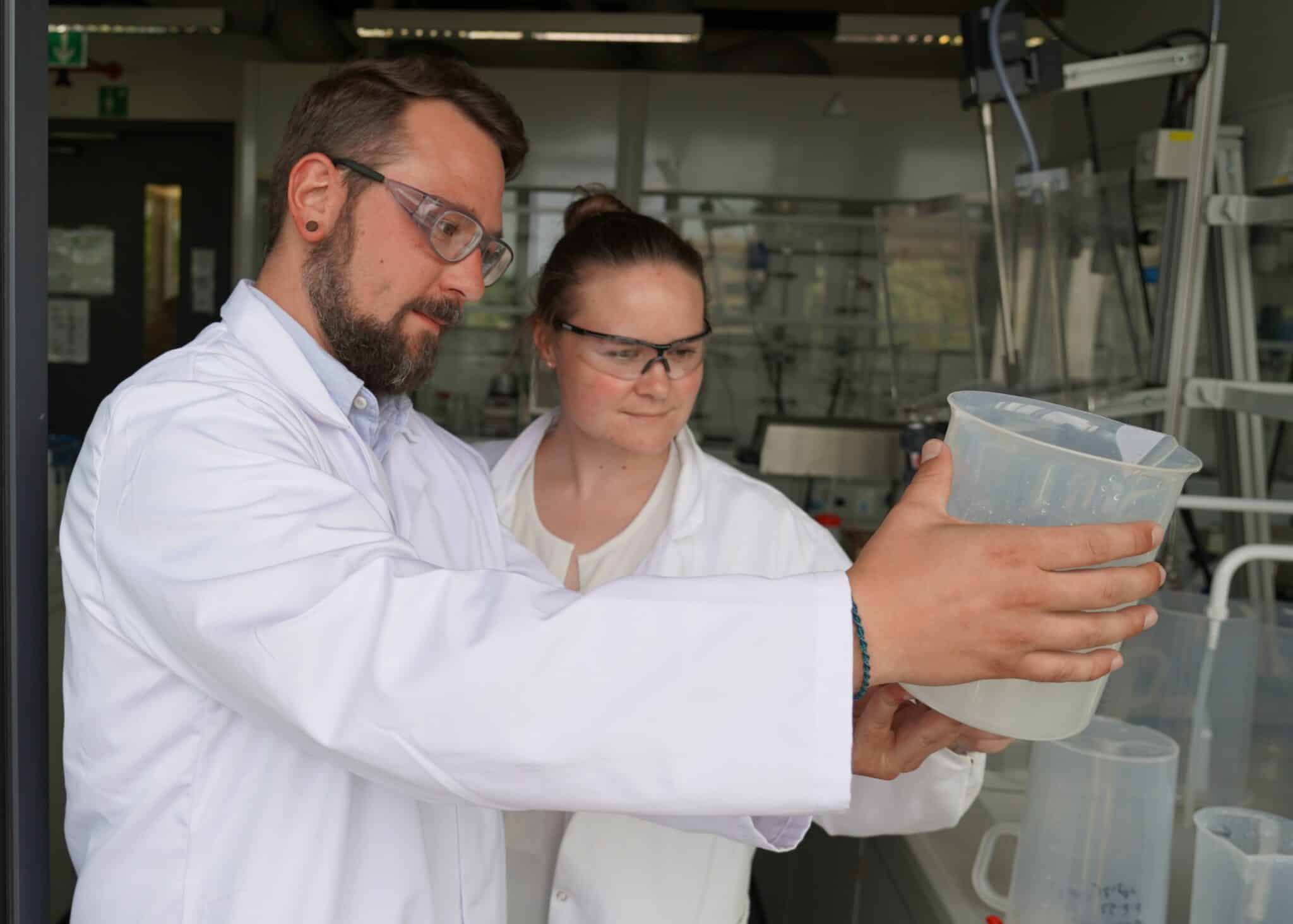 Rath gewann ihren Studienkollegen und Mitdoktoranden Mathias Stanzel für weitere Untersuchungen. Die Kollegen vom Institut für Papierfabrikation und Mechanische Verfahrenstechnik an der TU Darmstadt stehen transdisziplinär mit Rat und Tat zur Seite. Der Pioneer-Fund der Universität ermöglichte Stanzel, die Forschungsarbeiten an der Silica-Papierbeschichtung fortzusetzen. Er fand heraus: „Die Methode funktioniert bei allen Cellulosestoffen, aus denen Papier ja hergestellt wird – egal ob lange Fasern, kurze Fasern, aber auch Baumwolle.“ Damit war auch klar: Diese Innovation hat weltweit großes Marktpotenzial. Pappteller, Papiertüten, Trinkhalme und -becher bis hin zu Hygienepapier: die Beschichtung CeraSleeve kann für vielfältige Papierprodukte nassfeste und wasserabweisende Lösungen anbieten, die nachhaltig und kreislauffähig sind. Aus dieser Idee machten Rath und Stanzel ein Gründungsprojekt.