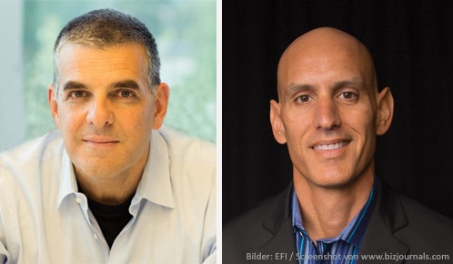 Guy Gecht trittt als CEO von EFI zurück. Ab 15. Oktober übernimmt William D. Muir, genannt Bill Muir (re.) die Führung des Software- und Druckmaschinenherstellers.(Bild: links: EFI, rechts: Screenshot von www.bizjournals.com)
