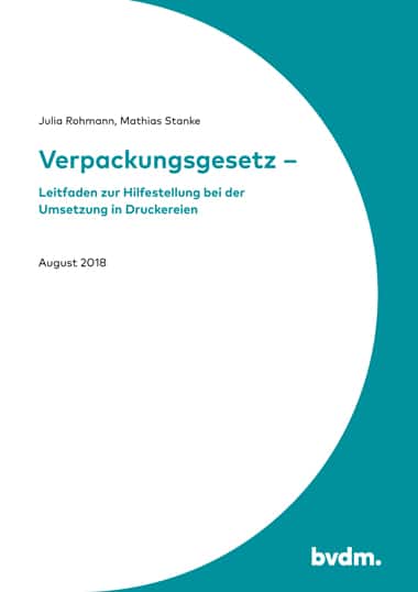 Der Leitfaden für Druckereien, der die wesentlichen Neuerungen des Verpackungsgesetzes beleuchtet, steht Mitgliedern der Druck- und Medienverbände kostenfrei zur Verfügung. Sie erhalten ihn über ihren jeweiligen Landesverband: www.bvdm-online.de/bvdm/landesverbaende/.