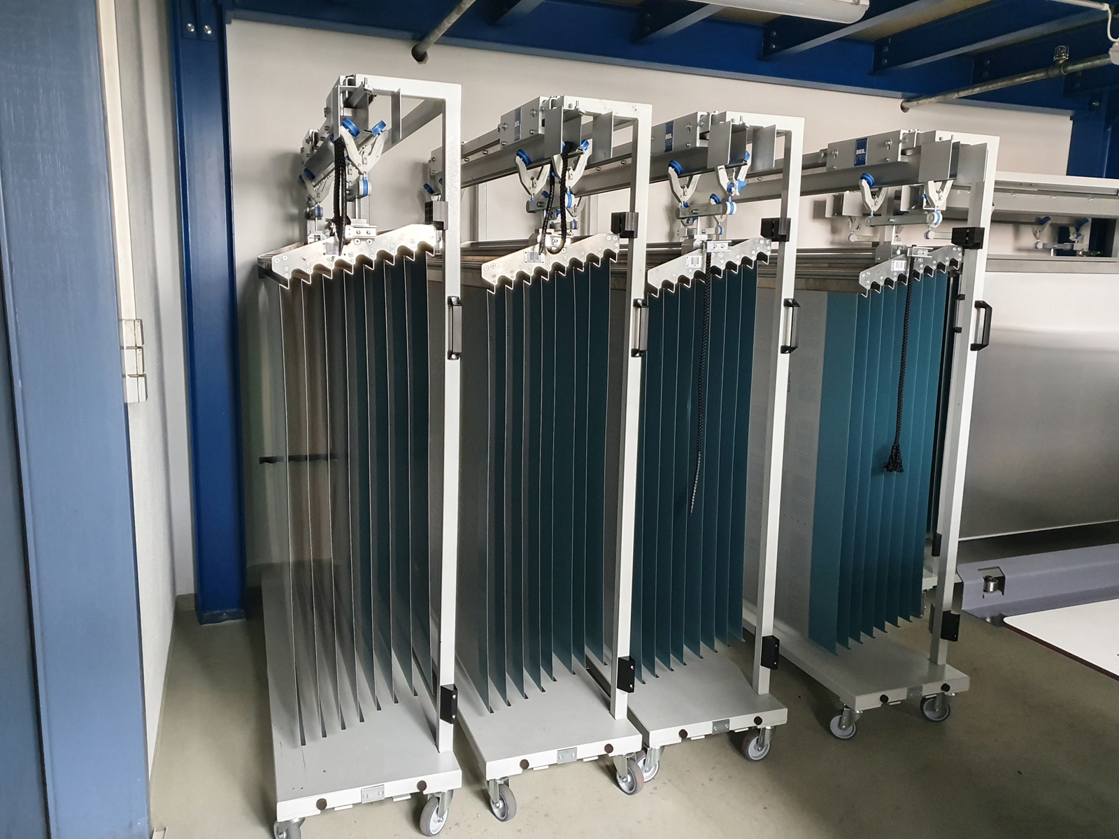 Für das Projekt hat Beil-Registersysteme (Abensberg) das Logistikkonzept realisiert. Der Kontakt zwischen Beck und Beil besteht schon seit vielen Jahrzehnten – über die in Nördlingen eingesetzten manuellen Geräte. Das jüngste Projekt wurde nun gemeinsam mit Manroland Goss und Hans Lüscher umgesetzt. Die Logistik-Lösung bestehend aus den folgenden Komponenten: Mehrere Plattenwagen mit abnehmbarer Gondel für jeweils acht abgekantete Druckplatten im Plattenformat 1.470 x 1.292 mm, ein neben dem Rollenwechsler installiertes Lift-System, das die abnehmbaren Gondeln (der Wagen bleibt am Boden) auf Galeriehöhe hebt sowie ein Schienensystem auf der Galerie der Druckmaschine zum Bewegen und Puffern mehrerer Gondeln. Dies vereinfacht den Plattentransport und erlaubt eine Anlieferung von Druckplatten direkt an die unteren und die oberen – über die Galerieebene erreichbaren – Druckwerke.