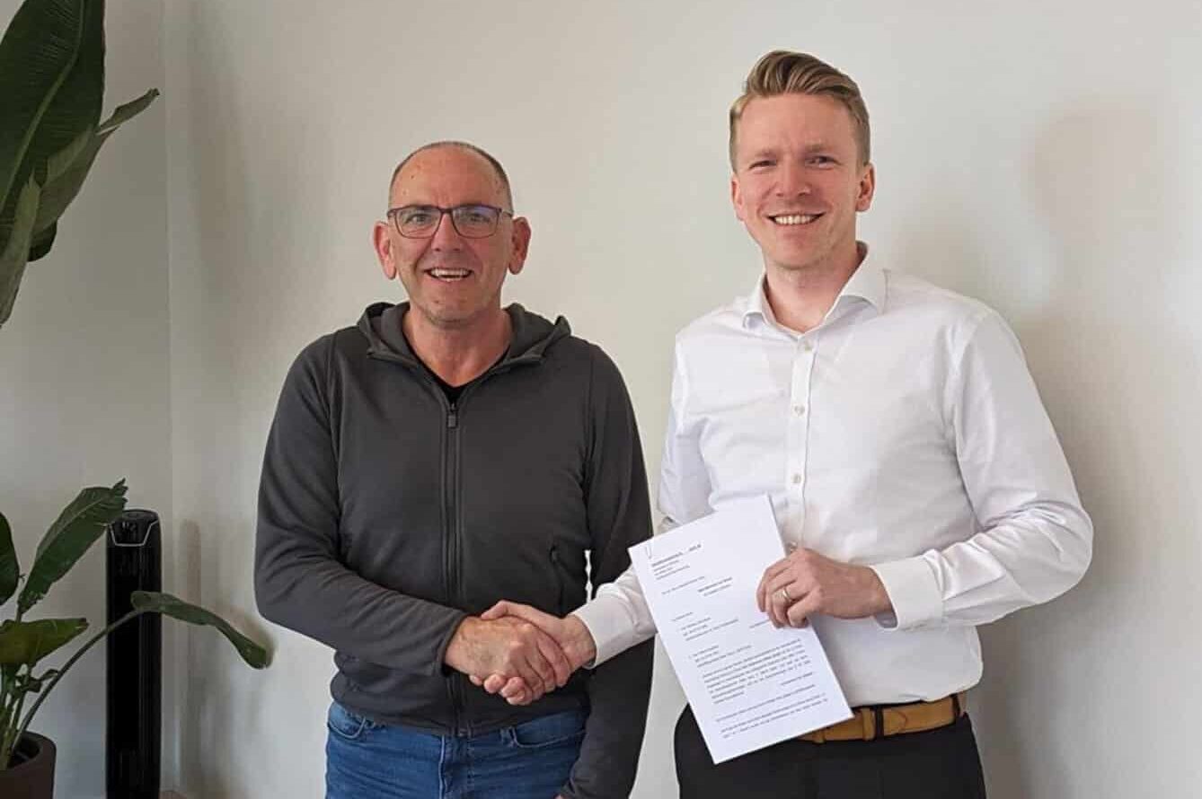 Carl Ostermann Erben übernimmt Flexo Service Nord: Andreas Bauer (FSN, li.) und Torben Segelken (COE) bei der Vertragsunterzeichnung.(Bild: COE)
