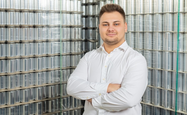Jungunternehmer Lukas Pflügl: Seine Welt sind Getränkedosen aller Art, die er abfüllt und mit individuellen Motiven bedruckt. (Bild: Design your Drink GmbH)