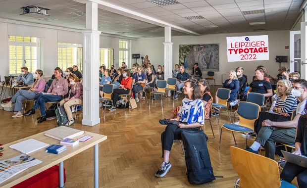 Vor Ort in Präsenz oder zuhause online am Rechner: das Publikum der Leipziger Typotage 2022.