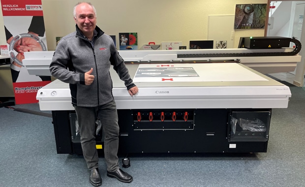 Der langjährige Canon-Kunde Erpa Systeme GmbH in Göttingen hat kurz nach dem Produktlaunch als erstes Unternehmen in Deutschland in einen Arizona 135 GT investiert. Das Large Format Printing-System, das als Einstiegsmodell für das UV-LED-Flachbettdruck-Business konzipiert wurde, wurde im hauseigenen Democenter von Erpa Systeme installiert.