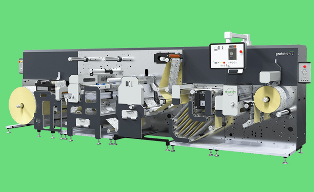 Die leistungsstarke Druck- und Stanzmaschine aus dem Hause Grafotronic ist mit einem halbrotativen UV-Flexodruckwerk sowie einer rotativen Stanzeinheit ausgestattet und ermöglicht eine präzise Verarbeitung von digital vorbedruckten Etiketten mit der Möglichkeit zur Klebstoffneutralisierung.