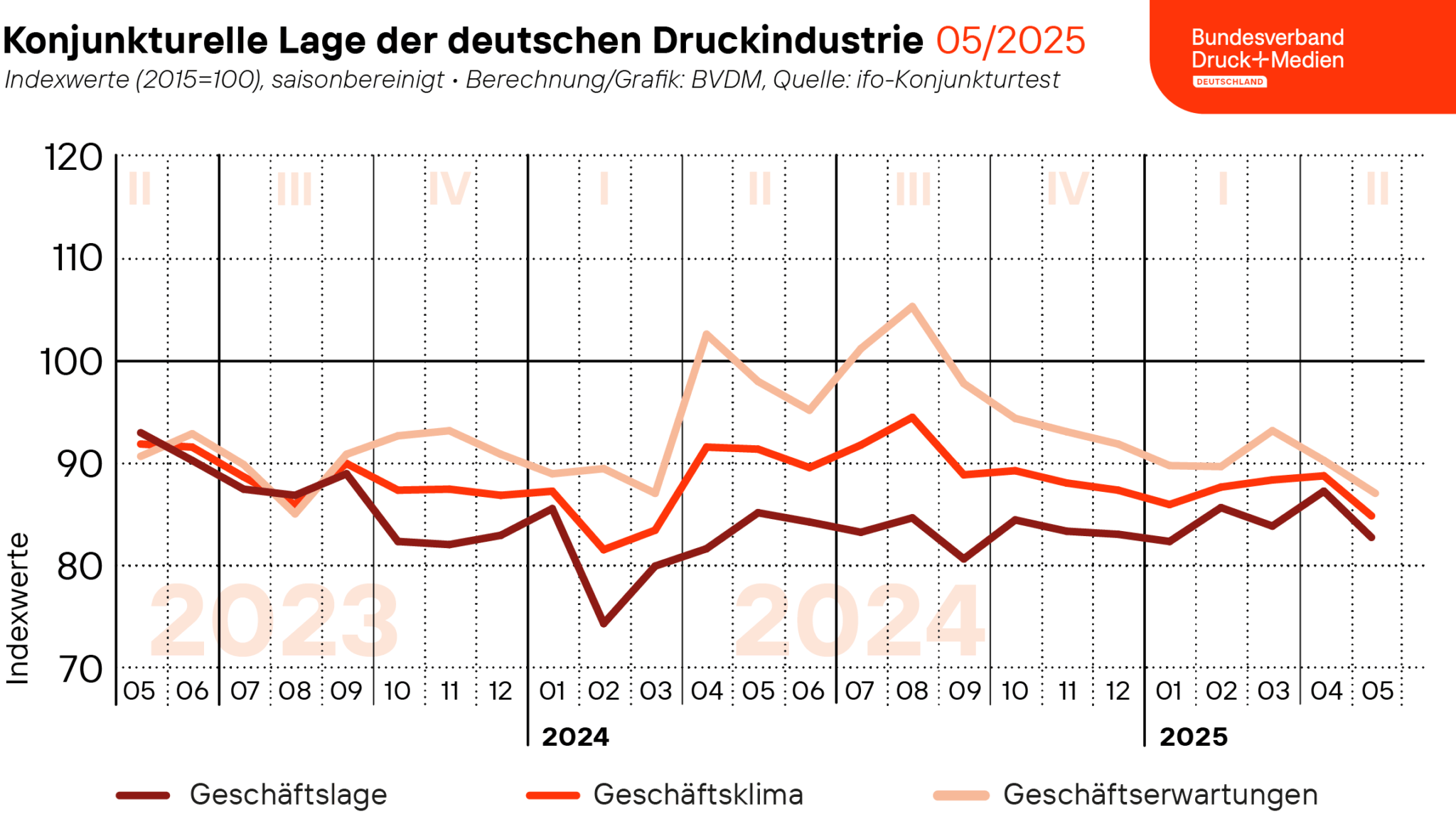 Die Druckindustrie im Mai 2025: Geschäftsklima trübt sich ein
