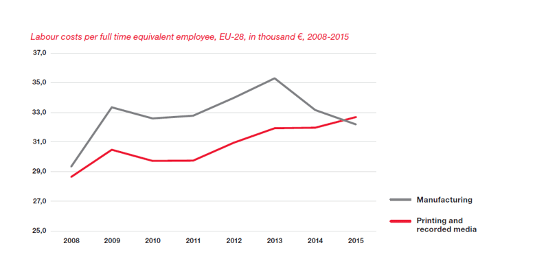 Die europäische Druckindustrie hat sich in den letzten zehn Jahren stark verändert: Die Lohnkosten sind gestiegen, gleichzeitig hat die Zahl der Angestellten um 30% abgenommen und auch die Zahl der Firmen ging zurück. Deutschland steht im Vergleich jedoch recht gut da: Deutschland ist der stärkste Produzent von gedruckten Produkten in Europa. Außerdem wird hier der höchste Umsatz im EU-28 Raum erwirtschaftet.