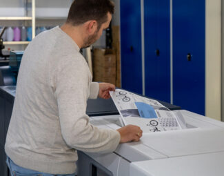 „Das ist ein echter Zugewinn unseres Workflows“, ergänzt Marius Müller. Auch die Bedienenden seien hoch zufrieden und lobten den Komfort, den die Voreinstellungen ermöglichen. Die Rüstzeiten hätten sich signifikant verkürzt, Energie werde nennenswert eingespart. Die wasserbasierten Tinten, die die varioPRINT iX2100 einsetze, spielten auf die fest verankerte Nachhaltigkeitsstrategie des Druckhauses ein.