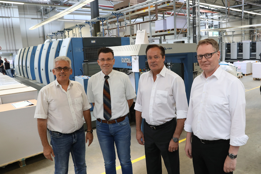 Quensen Druck, Steppat Druck und BWH fusionieren: Armin Ahrens, Michael Motz, Thomas Quensen und Thomas Masselink (v.l.n.r.) werden das neue, 140 Mitarbeiter starke Unternehmen in Hannover-Mühlenberg dann gemeinsam leiten. (Bild: Rainer Dröse)