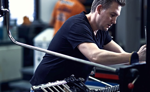 Geschäftsführer Thomas Karcher: In einer Familiendruckerei legt der Chef auch mal selbst mit Hand an.