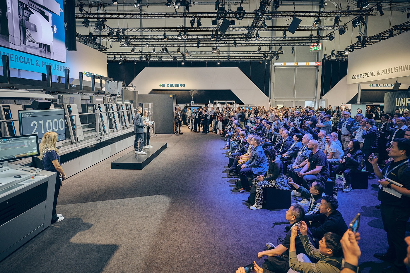 In täglichen Präsentationen bei Heidelberg in Halle 1 wurden Neu- und Weiterentwicklungen für den Akzidenz- und Verpackungsdruck gezeigt.(Bild: Heidelberg)