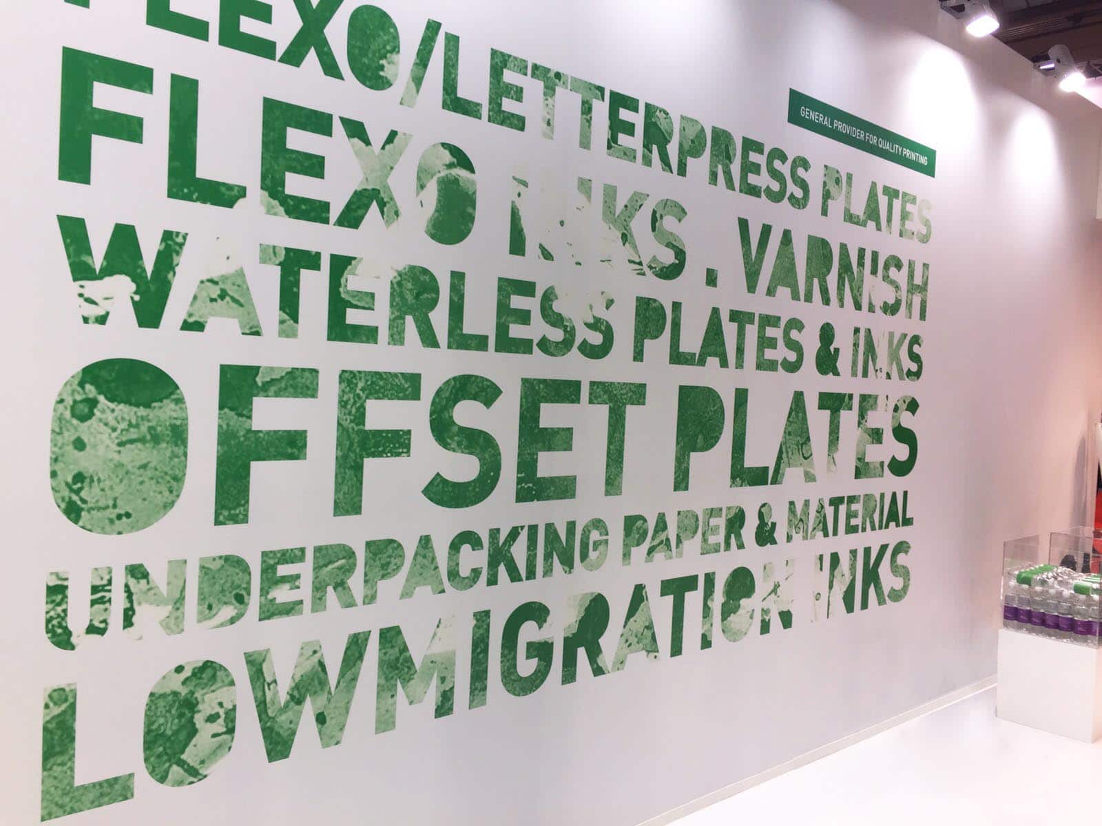 Wanddeko des Marks-3zet-Standes bei der Labelexpo 2015, die das Vertriebsprogramm des Unternehmens zeigt. (Bild: DD-Archiv)