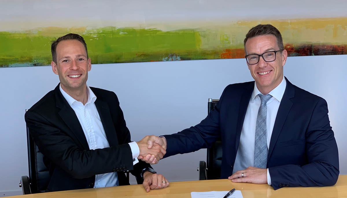 Oliver Bruns (CEO der Edelmann Group, li.) und Kevin Rogers (President, Global Sales, Elanders Group) beim Handschlag.(Bild: Edelmann)