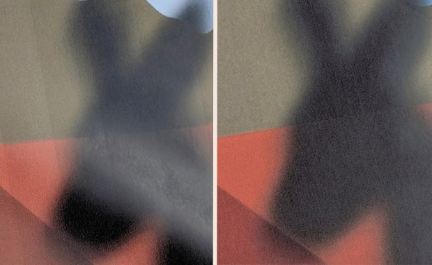 Streifenbildung bei sensiblen Jobs im Inkjet-Großformatdruck: vorher (links), mit »Print Flat« (rechts).(Bild: Global Graphics Software)