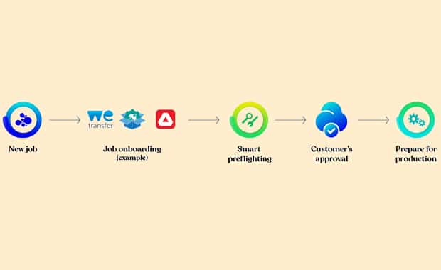 Zur Integration in bestehende Workflows im Großformatbereich wurde Enfocus Switch angepasst. Die angepasste Switch-Lösung ist eine Workflow-Automatisierungsplattform, die MIS-, Proofing-, Web-to-Print-, PDF-Preflight-, Kundenfreigabe- und Produktionsvorbereitungsprozesse miteinander verbindet. Dies soll es Großformatdruckereien ermöglichen, einen vollautomatischen Prozess für ihre Druckanwendungen und -geräte zu schaffen, um Zeit und Kosten zu sparen und letztlich einen Mehrwert in der gesamten Wertschöpfungskette zu schaffen.