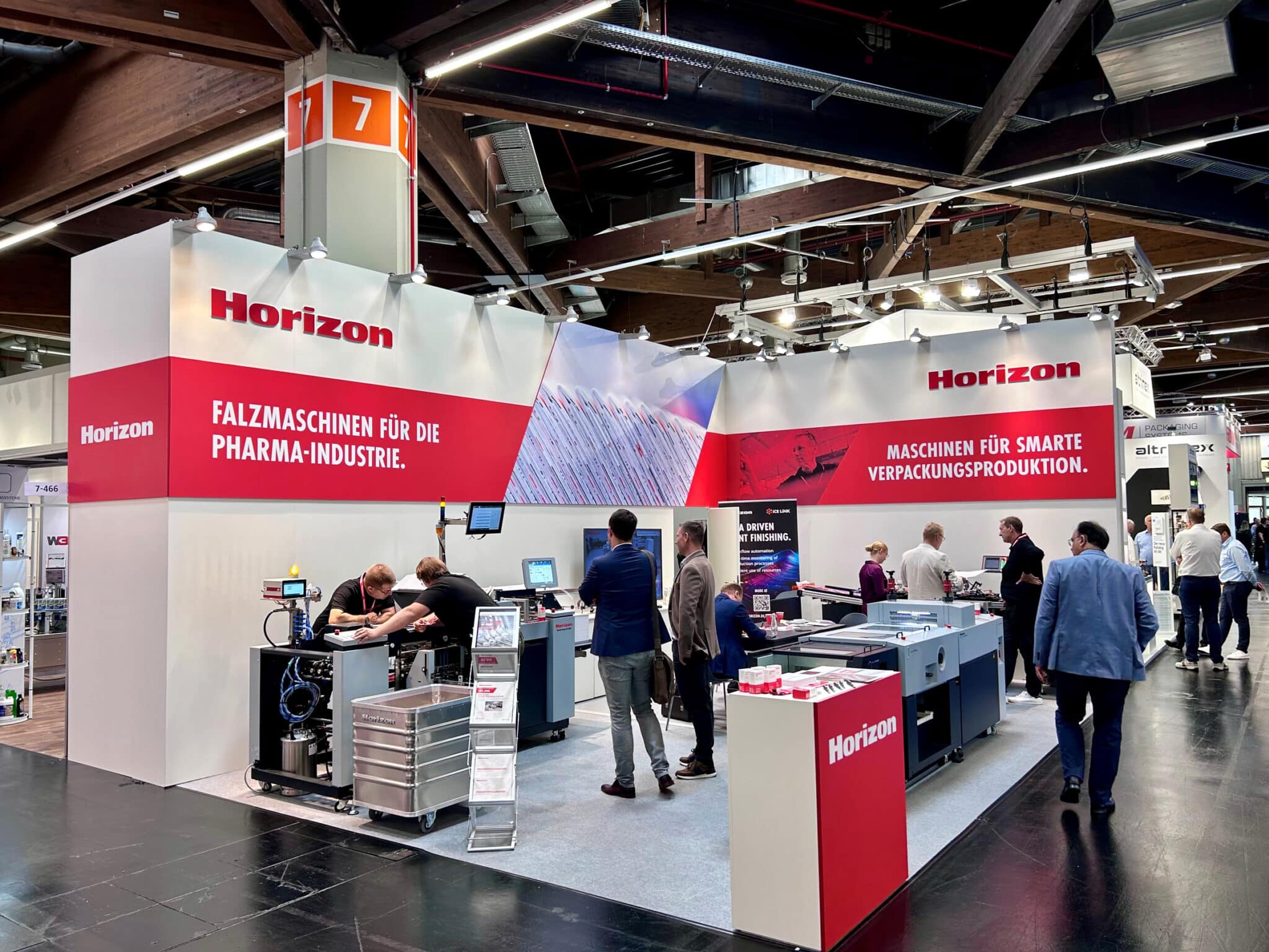 So zeigte das Fachpublikum reges Interesse am präsentierten Fertigungsablauf vom Stanzen und Kleben der Verpackung mit der Horizon RD-N4055DM und der Pro Cut Fold Stream bis hin zum Falzen des passenden Beipackzettels mit der Horizon AF-408F. Auch der cloudbasierte Workflow-Service iCE LiNK, mit dem alle Horizon Maschinen auf der Messe vernetzt waren, kam gut an. Neben der Überwachung des Produktionsstatus jeder einzelnen Maschine in Echtzeit ermöglicht er vorbeugendes Wartungsmanagement sowie den Versand von Auftragsdaten an die Maschine. Horizon bietet iCE LiNK derzeit mit einer dreijährigen kostenlosen Testphase an.