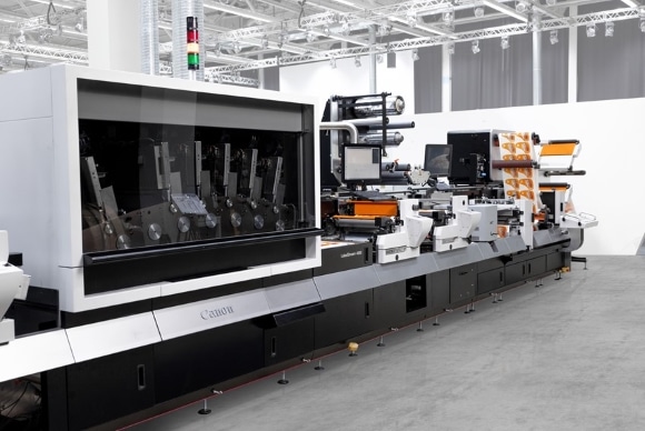 Der Etikettenproduzent mit Sitz in Forli investierte in die Canon LabelStream 4000, um sein Anwendungsangebot zu erweitern und schneller auf sich ändernde Marktanforderungen reagieren zu können. Das Digitaldrucksystem ermöglicht es, kürzere Liefertermine einzuhalten und die steigende Nachfrage nach kleinen Auflagen zu erfüllen. Das auf dem UV-Inkjet basierende Drucksystem erreicht eine Produktivität von 1.845 qm/Stunde bei 410 mm Druckbreite und 75 m/min. Zur Hybridkonfiguration gehören neben dem 5-Farben-Digitaldruckwerk (CMYK+W) zwei zusätzliche Flexo-Einheiten, eine Kaltfolienprägung und eine automatisierte Semi-Rotationsstanze.