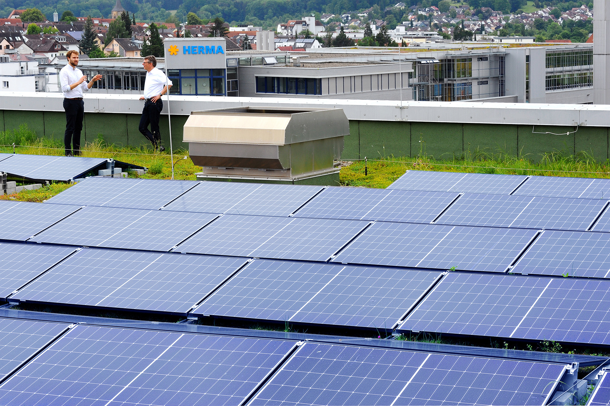 Photovoltaik-Anlagen auf den Herma-Gebäuden.(Bild: Herma)