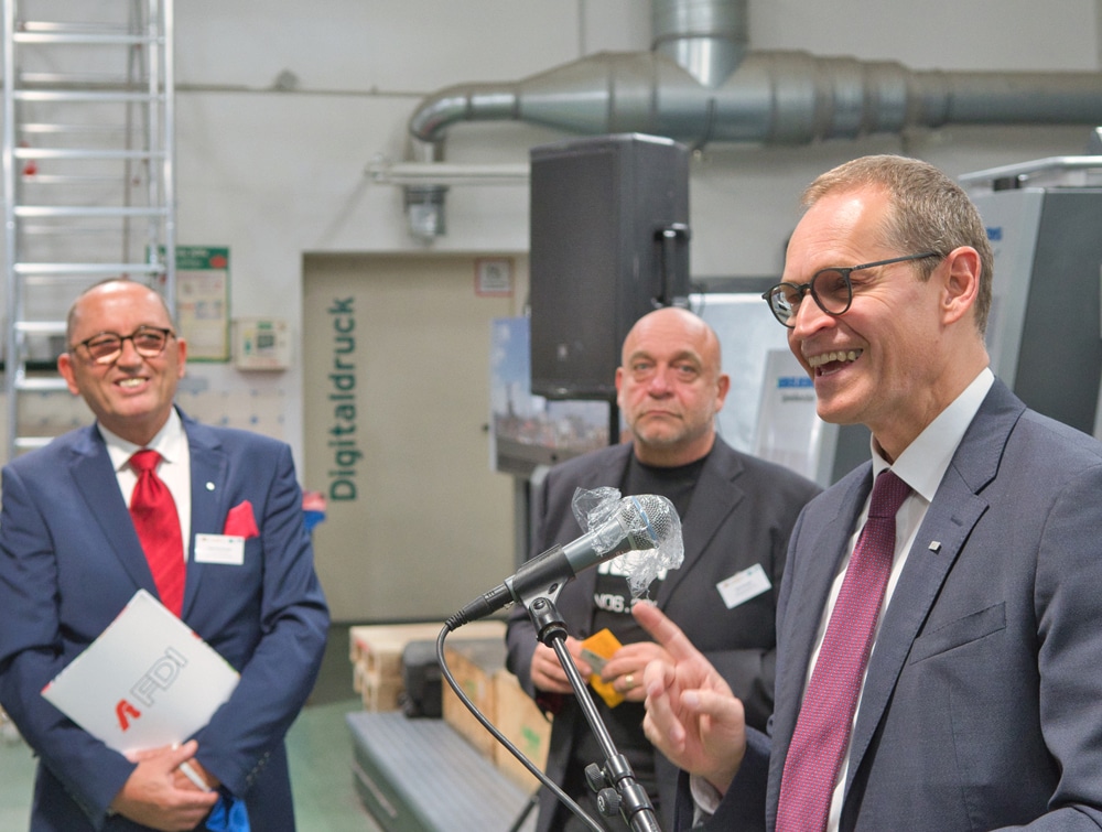 “Als Sohn einer Druckerfamilie und als gelernter Kaufmann und Drucker freue ich mich außerordentlich, ab jetzt Ehrenmitglied des altehrwürdigen FDI Berlin zu sein. Mein Vater wäre sehr stolz auf mich. Ich schätze die Arbeit des Verbandes sehr. Der FDI Berlin macht so viel für seine Mitglieder und deren Interessen im Beruf. Gerade jetzt eine wertvolle Unterstützung für die Mitglieder und die Druckbranche in Berlin. Nicht zuletzt kommt die Arbeit des FDI auch der Berliner Wirtschaft zu Gute”, so der Regierende Bürgermeister Michael Müller kurz nach der Übergabe der Urkunde und einer FDI-Anstecknadel zu seiner Ehrenmitgliedschaft.