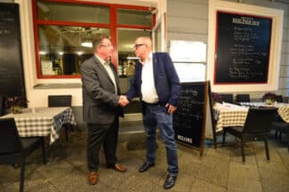 Bodo Krusenbaum, ehemaliger 1. Vorsitzender und Ehrenmitglied (r.), gratuliert dem langjährigen FDI-Mitglied und neuem 1. Vorsitzenden Matthias Voß. (Bild: mifuxx)