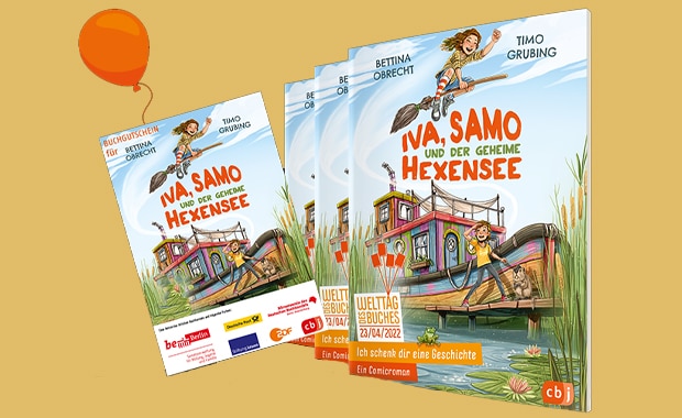 Das diesjährige Welttags-Buch ist der Comicroman „Iva, Samo und der geheime Hexensee“ von Bettina Obrecht. Darin wartet auf die Wasserhexen Iva und Samo ein großes Abenteuer: An ihrem zehnten Geburtstag bekommen sie einen Besen geschenkt, der sie zu einem geheimen See bringt. Es ist ihre Aufgabe, einen Monat lang auf das Gewässer aufzupassen. Doch als ein Influencer ein Video am See dreht, ist es vorbei mit der Idylle. Fans pilgern an den Drehort und hinterlassen ihre Abfälle. Eine Gruppe von Kindern, die sich vorher schon regelmäßig am Ufer getroffen hat, ist darüber genauso wütend wie Iva und Samo. Ein gemeinsamer Plan muss her, um den See zu retten …