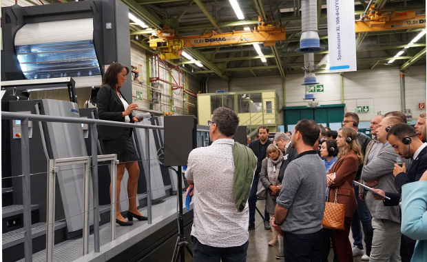 Beim Label Day am Standort Wiesloch-Walldorf sahen die Besucher komplette Produktionsworkflows für Nassleim- und Inmould-Etiketten (IML) auf Speedmaster-Maschinen.