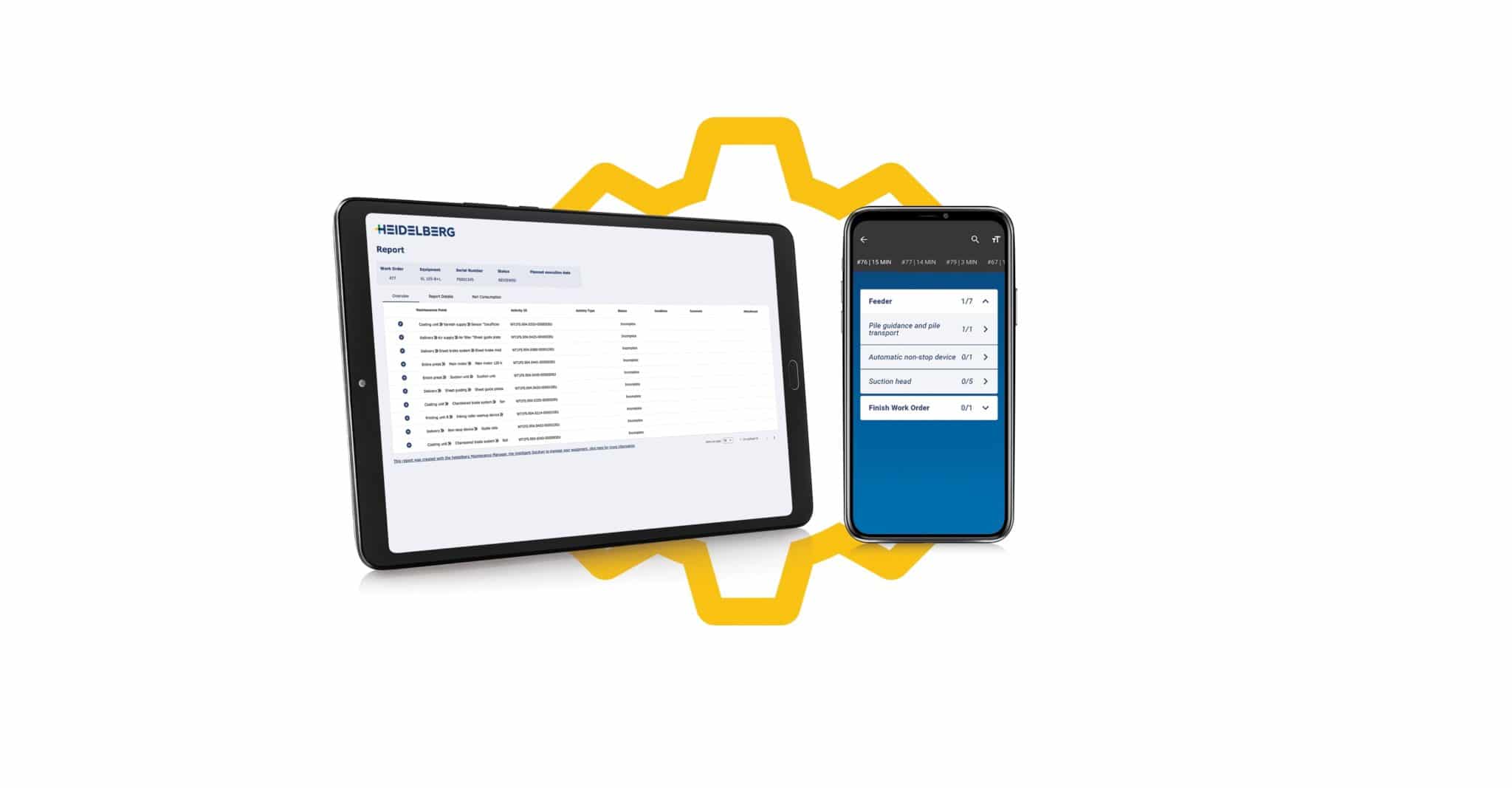 In der neuen Webanwendung lassen sich anhand der Maschinendaten fällige Wartungstätigkeiten abhängig vom Wartungsintervall und der Nutzung der Maschine planen und automatisisert steuern. Per App erhält der Heidelberg-Servicetechniker die Aufträge auf sein Mobilgerät und kann diese vor Ort beim Kunden abarbeiten.