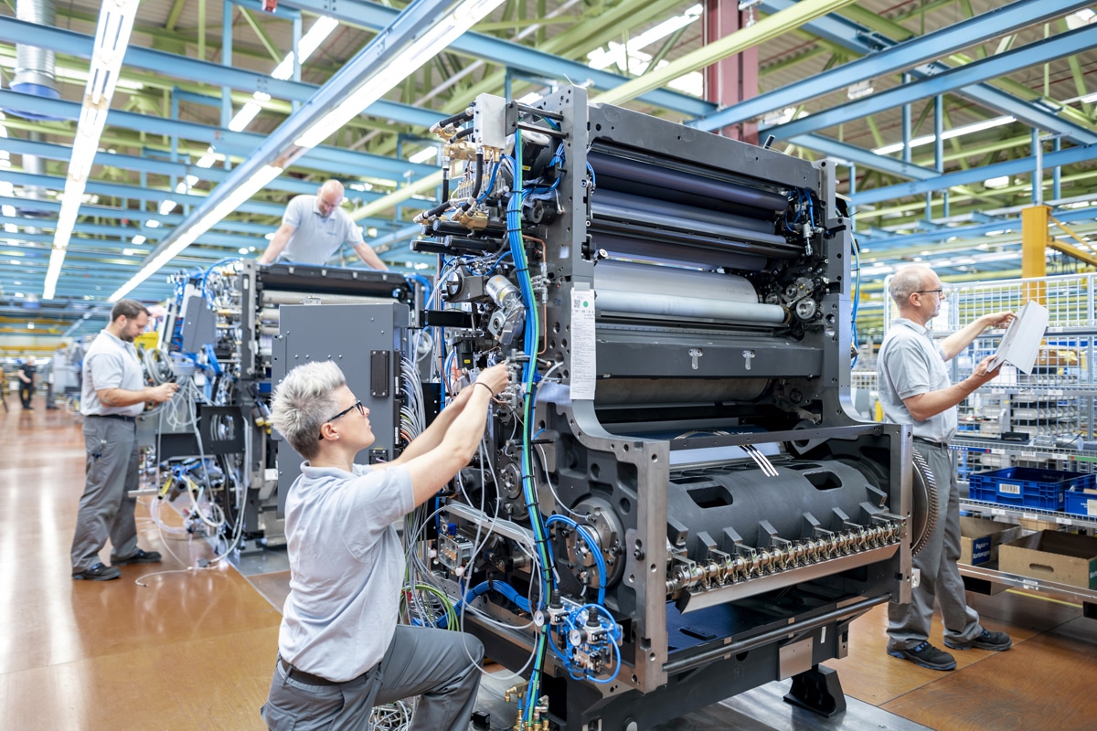 Blick in die Bogenoffset-Montage in Wiesloch-Walldorf.(Bild: Heidelberger Druckmaschinen AG)