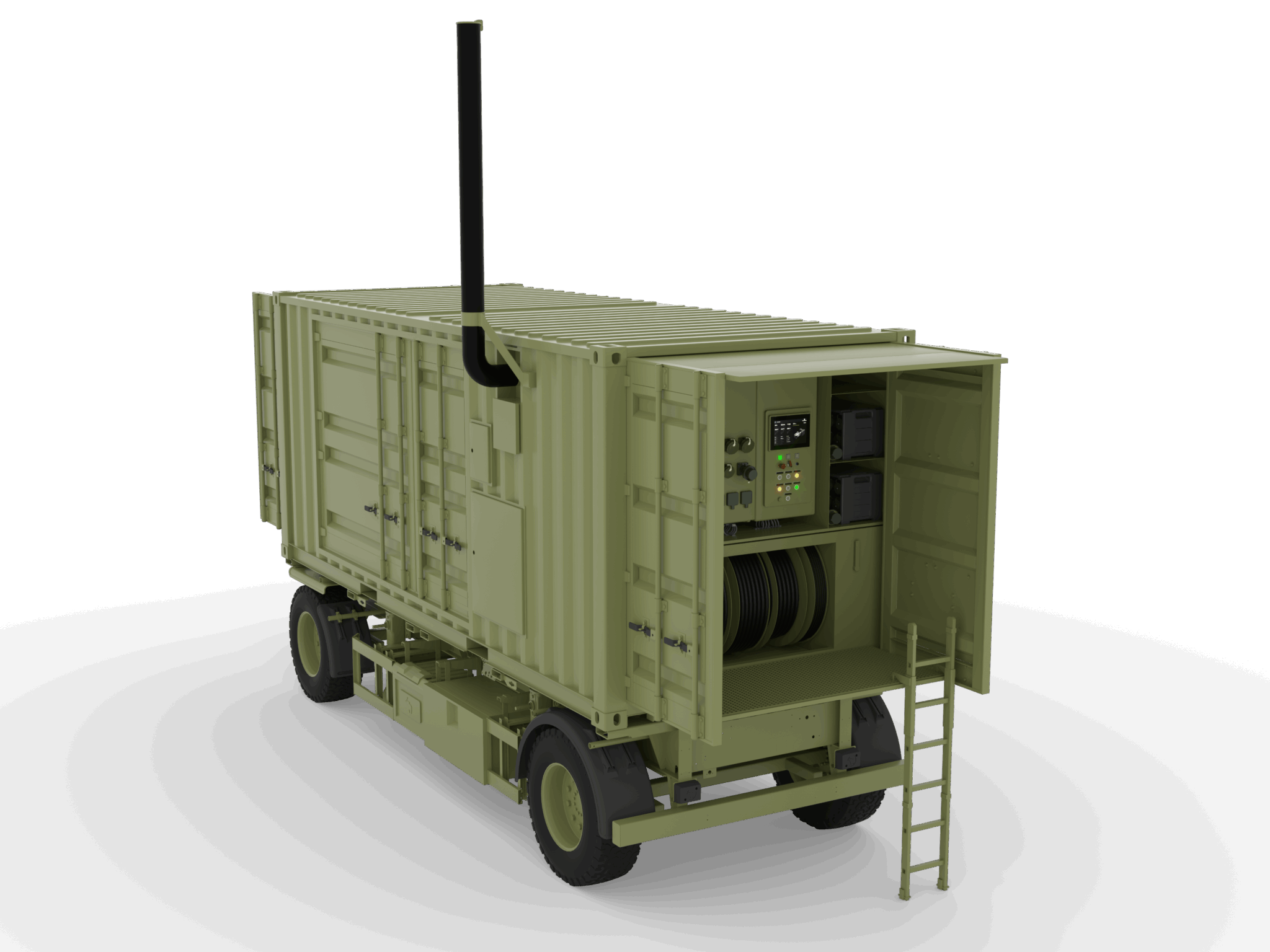 Das Stromerzeugungsaggregat PGM low emissions: Mit diesem Stromerzeuger, mit einer Leistung von 20 bis 200 KW, wird Vincorion die Bundeswehr und andere Streitkräfte europäischer Länder ausrüsten.(Bild: Heidelberger Druckmaschinen AG)