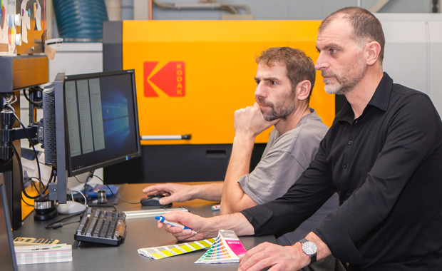 Die Digitaldruckmaschine Kodak Nexfinity ist für Eckenfelder die Lösung zur Produktion eines Großteils seiner Kleinauflagen. Die Bedienung und Steuerung des Digitaldrucksystems erfolgt über das Kodak Digital Frontend.(Bild: Kodak)