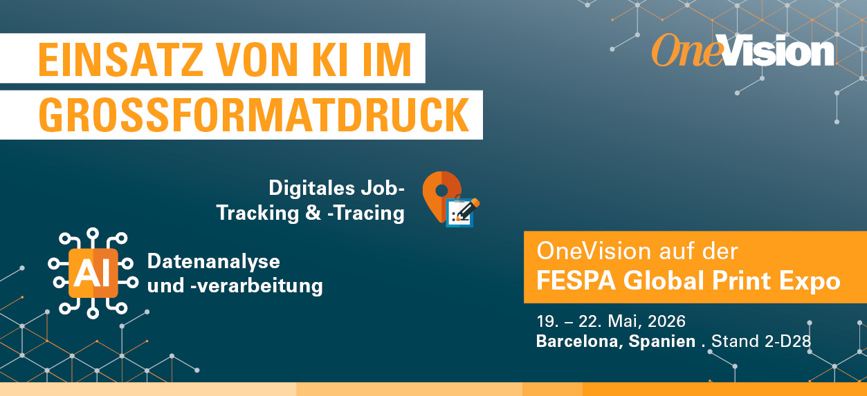 Die Anforderungen im Großformatdruck steigen seit Jahren kontinuierlich. Komplexe Workflows, große Datenmengen und ein wachsender Effizienzdruck stellen Druckdienstleister vor immer neue Herausforderungen. Auf der Fespa Global Print Expo 2026 in Barcelona zeigt die OneVision Software AG, wie sich diese Herausforderungen mit Automatisierung und künstlicher Intelligenz gezielt adressieren lassen.