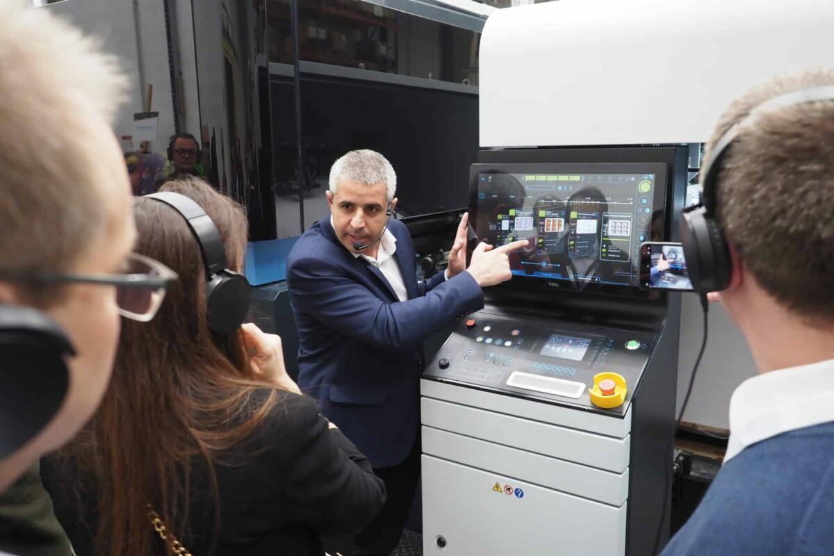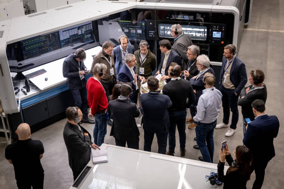 An einem Tag waren Kunden der Groupe Prenant geladen, am anderen Tag hatten Drucker aus ganz Europa die Chance, sich die Maschine aus der Nähe anzusehen und unter anderem mit Philippe Vanheste, dem Deputy General Manager der Groupe Prenant, ins Gespräch zu kommen. Unter den rund 50 Interessenten an der Landa-Technik waren auch einige Geschäftsführer und Führungskräfte aus deutschen Druckunternehmen.