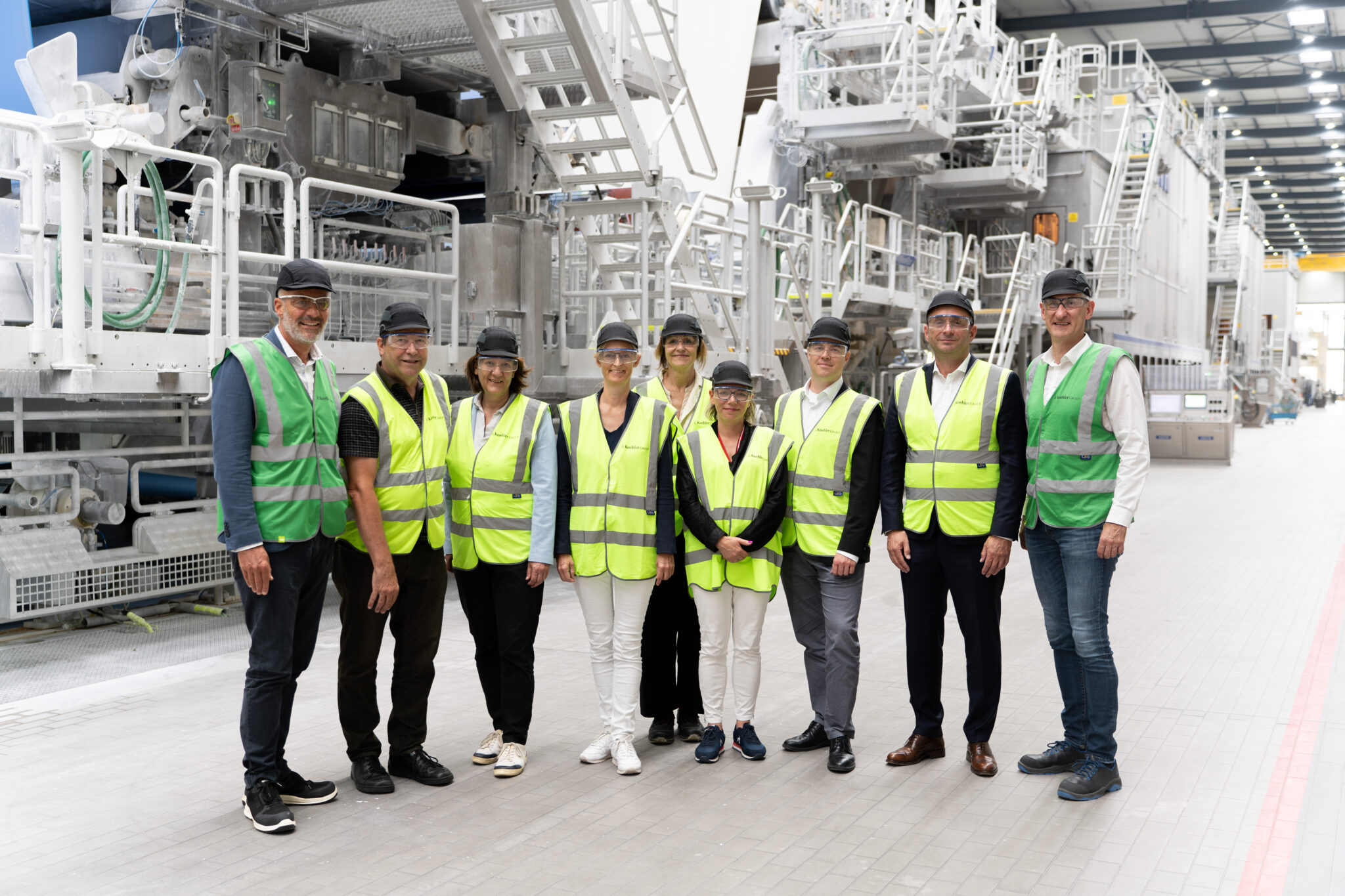 Zu Besuch bei Koehler Paper am Standort Kehl – der Verwaltungsrat des Hafens Kehl mit Staatssekretärin Gisela Splett (Bündnis 90/Die Grünen) sowie MdL Thomas Marwein (Bündnis 90/Die Grü-nen).(Bild: Koehler-Gruppe)