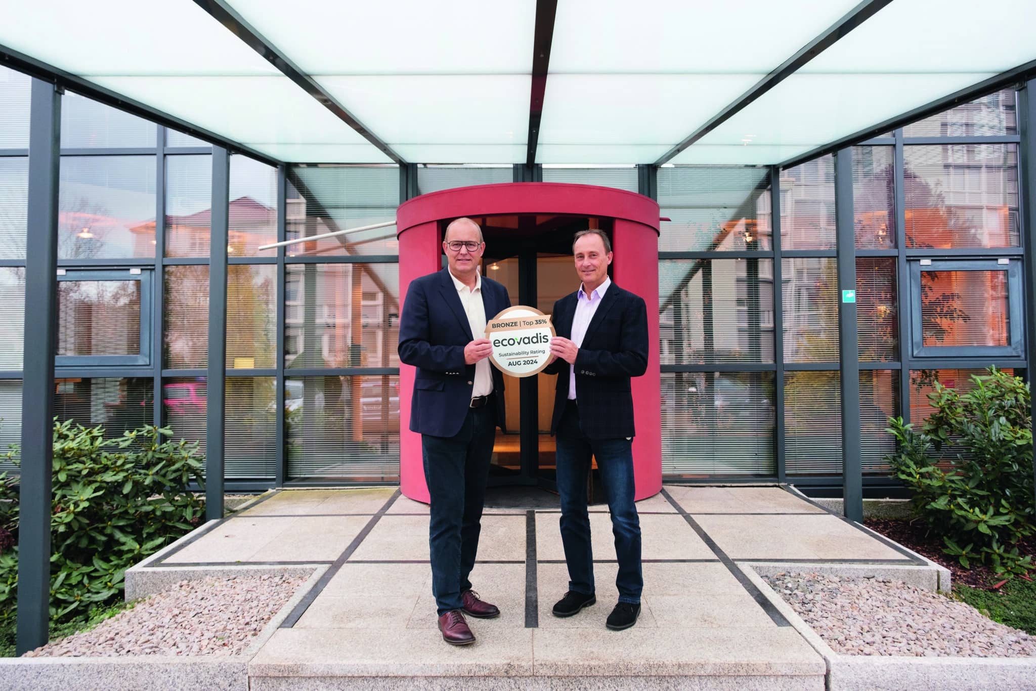 Freuen sich über die EcoVadis-Bronzemedaille: Krug+Priester-Geschäftsführer Dr. Ralf Krohn (links) und Bernd Pabst (Production Services).(Bild: Krug + Priester)