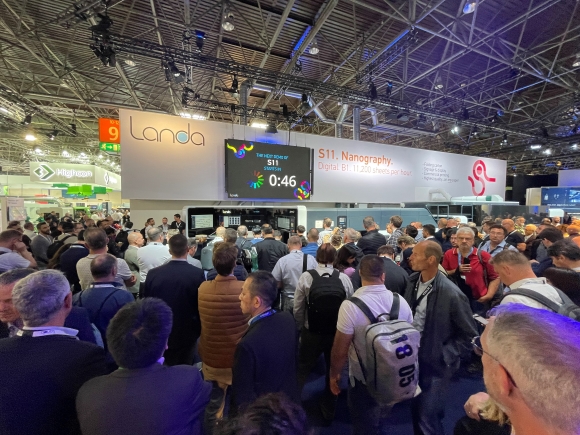 Auf der Drupa 2024 hat Landa Digital Printing seine neuen Modelle S11 und S11P, die im B1-Format drucken, vorgestellt. Gegenüber den Vorgängermodellen S10 und S10P wurde bei diesen Systemen die Druckgeschwindigkeit von 6.500 auf 11.200 Bogen/Stunde im Schöndruck gesteigert.
