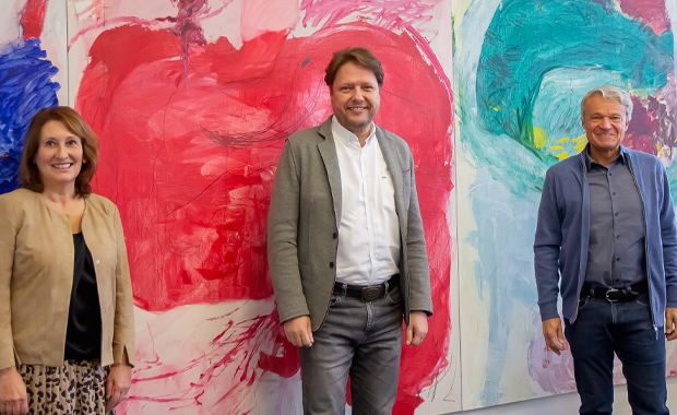 Geschäftsführerin Ingrid Müller und CEO Eugen Müller begrüßen Oliver Lenz (Bildmitte) als neues Mitglied der Geschäftsführung beim Omnichannel-Medienproduktionsspezialisten Meyle+Müller.
