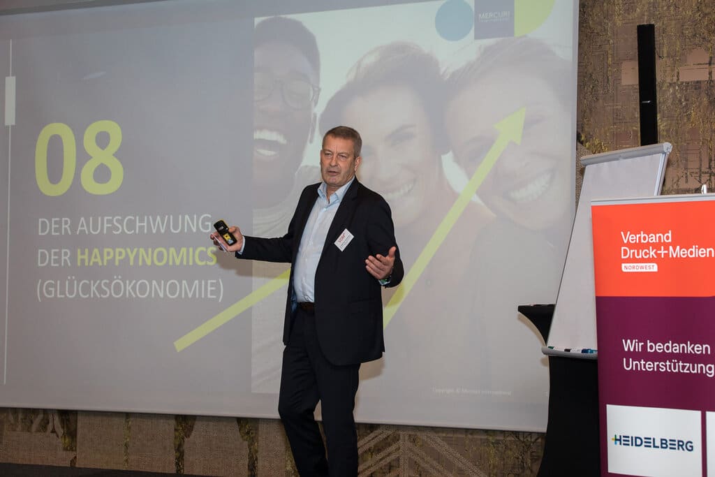 Besondere Resonanz fanden die beiden Best-Practice-Vorträge von Betrieben aus der Branche. Stefan Mail, Geschäftsführer der Mail Druck und Medien präsentierte seine persönliche Geschichte unter dem Titel “50% mehr Umsatz trotz Krise”. Das Publikum erhielt Einblicke in seine erfolgreiche Strategie, die auch in schwierigen Zeiten zu Wachstum führen konnte. Das Augenmerk lag dabei insbesondere auf der Fokussierung der Kundenbedürfnisse, die aus Sicht Stefan Mails, die Basis für neue Produktentwicklungen und Vertriebsargumentationen bilden sollten.