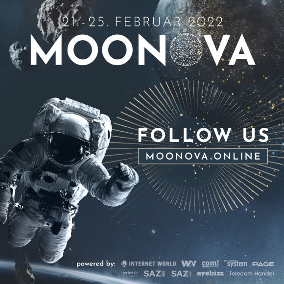 Das neue B2B-Event MOONOVA beleuchtet die Zukunft des digitalen Handels und Marketings. Vom 21. bis zum 25. Februar findet MOONOVA als digitale Messe statt sowie am 22. und 23. Februar zusätzlich live vor Ort in München. Entscheider und Macher in Marketing, Sales und Product können sich online auf der Expo über relevante Techniktrends, neue Ideen und Produkte informieren oder auf den verschiedenen Bühnen der Konferenz von Thought-Leadern, Innovatoren und Experten inspirieren lassen sowie mit Branchenakteuren networken.