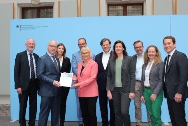 Vertreter der in der AGRAPA zusammengeschlossenen Verbände übergeben der parlamentarischen Staatssekretärin im Bundesumweltministerium, Dr. Bettina Hoffmann, die erweiterte Selbstverpflichtung.(Bild: BMUV)