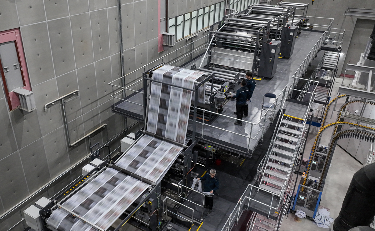 Die Hankyung Media Group hat im Bupyeong National Industrial Complex in Incheon, westlich von Seoul, eine neue Druckerei auf einem rund 11.500 m² großen Gelände errichtet. Das Herzstück bilden die beiden Colorman E-Line Maschinen, die mit jeweils sechs Druckeinheiten, Rollenwechslern und Falzapparaten sowie einem umfassenden Automatisierungspaket ausgestattet sind. Dank flexibler Konfigurationsmöglichkeiten können bis zu 380.000 Exemplare pro Stunde mit 24 Seiten oder 190.000 Exemplare pro Stunde mit 48 Seiten in Farbe produziert werden – ein Alleinstellungsmerkmal in der koreanischen Medienbranche.