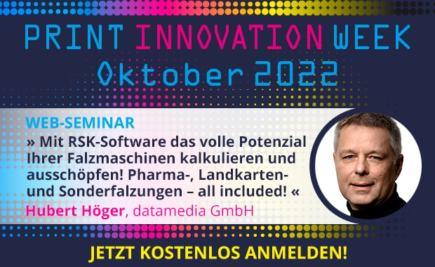 Für Verpackungen werden viele Packungsbeilagen benötigt. Die stabile Nachfrage, selbst in Krisenzeiten, wie auch hohe Anforderungen des Gesetzgebers machen diese Produkte interessant. Das Online-Seminar der PRINT INNOVATION WEEK am 12.10.2022 zeigt Ihnen, wie Sie mit RSK-Software Packungsbeilagen kalkulieren und das volle Potenzial Ihrer Falzmaschinen für Pharma-, Landkarten- und Sonderfalzungen ausschöpfen.