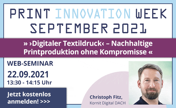 Der digitale Textildruck bietet den Kunden in den Branchen Möbelindustrie, Inneneinrichtung, Dekoration und Mode eine Menge Vorteile. Deshalb verzeichnet man hier gerade starke Wachstumsraten, Wie Druckereien, und zwar selbst wenn sie heute (noch nicht) auf Textilien drucken, von diesem interessanten Markt profitieren können, erklärt Christoph Fitz (Kornit Digital Europe GmbH) in einem kostenlosen Web-Seminar am Mittwoch, den 22.09.2021, von 13:30-14:15 Uhr.