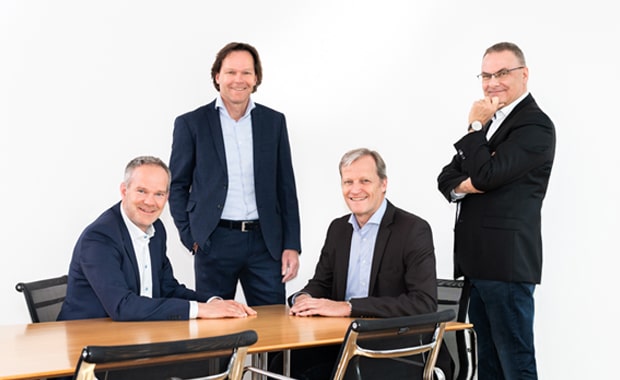 Dr. Rüdiger Schmidt mit Adrian und Christian Meister sowie Roland Ort als neues Team der Buchbinderei Conzella (von links).(Bild: Conzella )