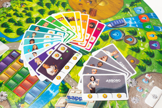 Brettspiel Arboro soll das Zusammenwirken von Papieren aufzeigen