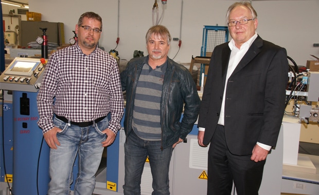 Die Geschäftsführer Jens und Holger Schöneis (von links) ließen sich bei der Entwicklung eines neuen ergänzenden Geschäftsmodells von Helmar-Schmidt-Geschäftsführer Jens Liebetreu beraten. (Bild: Robert Glaser)